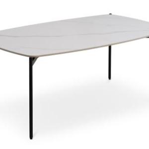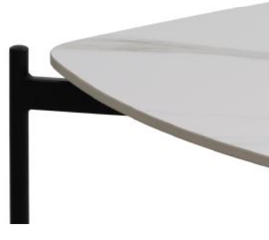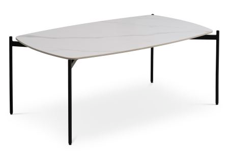 Coffee table with white ceramic top and black legs. 120 x 70 cm.