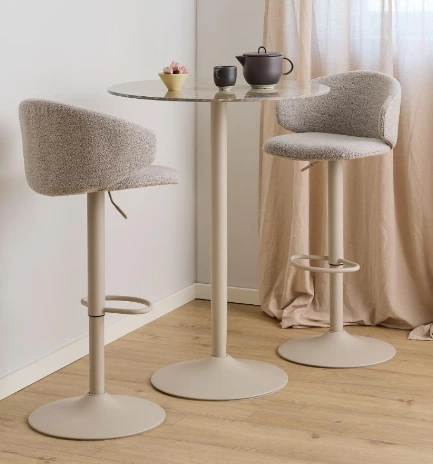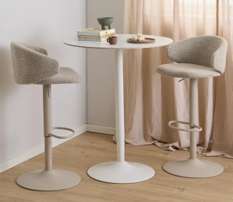 Metal bar and ceramic countertop. Color: Matte white marble or glossy brown marble. Ø 80 x 105.