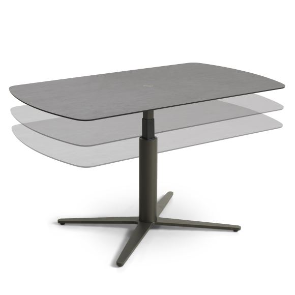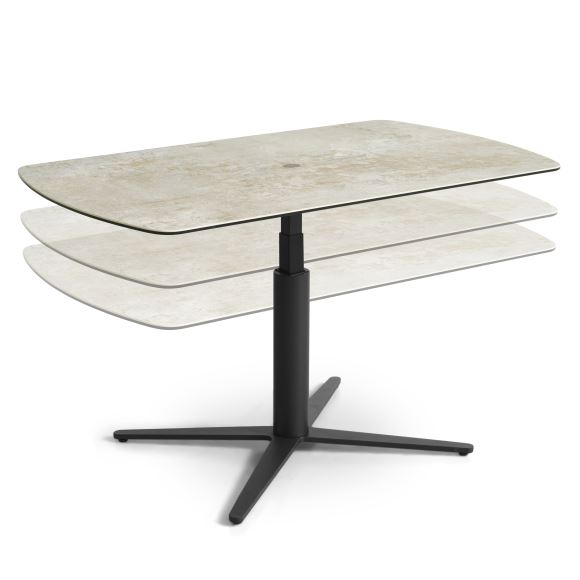 Mesa de centro elevable muy práctica. Encimera de cerámica patas metálicas. Colores: Taupe o antracita. 110 x 85 cm.